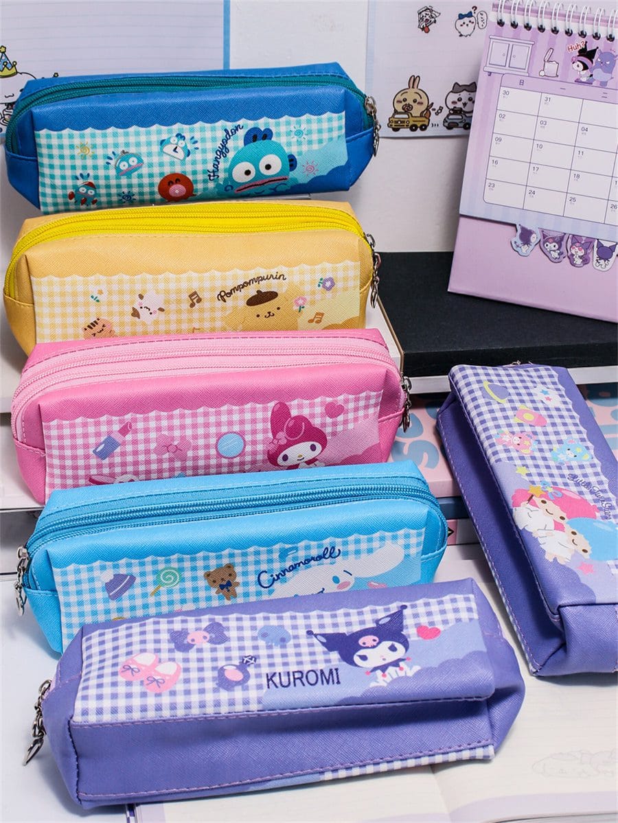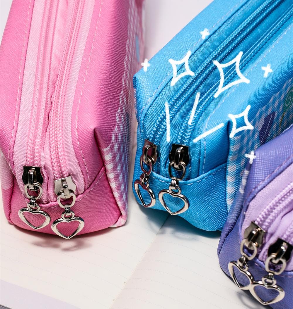 Double-zippered design with dual compartments for organizing stationery or makeup