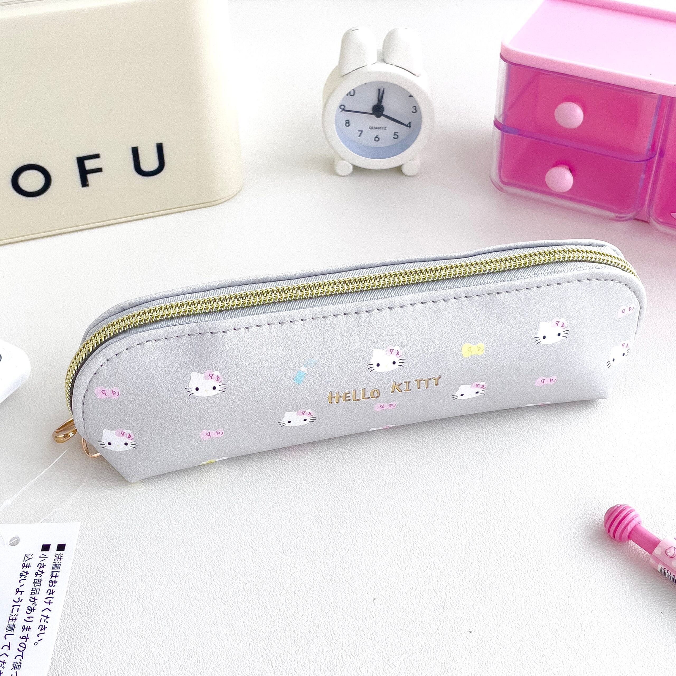 This slightly larger version features adorable Sanrio character patterns and a gold heart zipper accent. Made from smooth, durable PU leather, it’s perfect for carrying pens and small stationery essentials while keeping a sleek and compact shape.